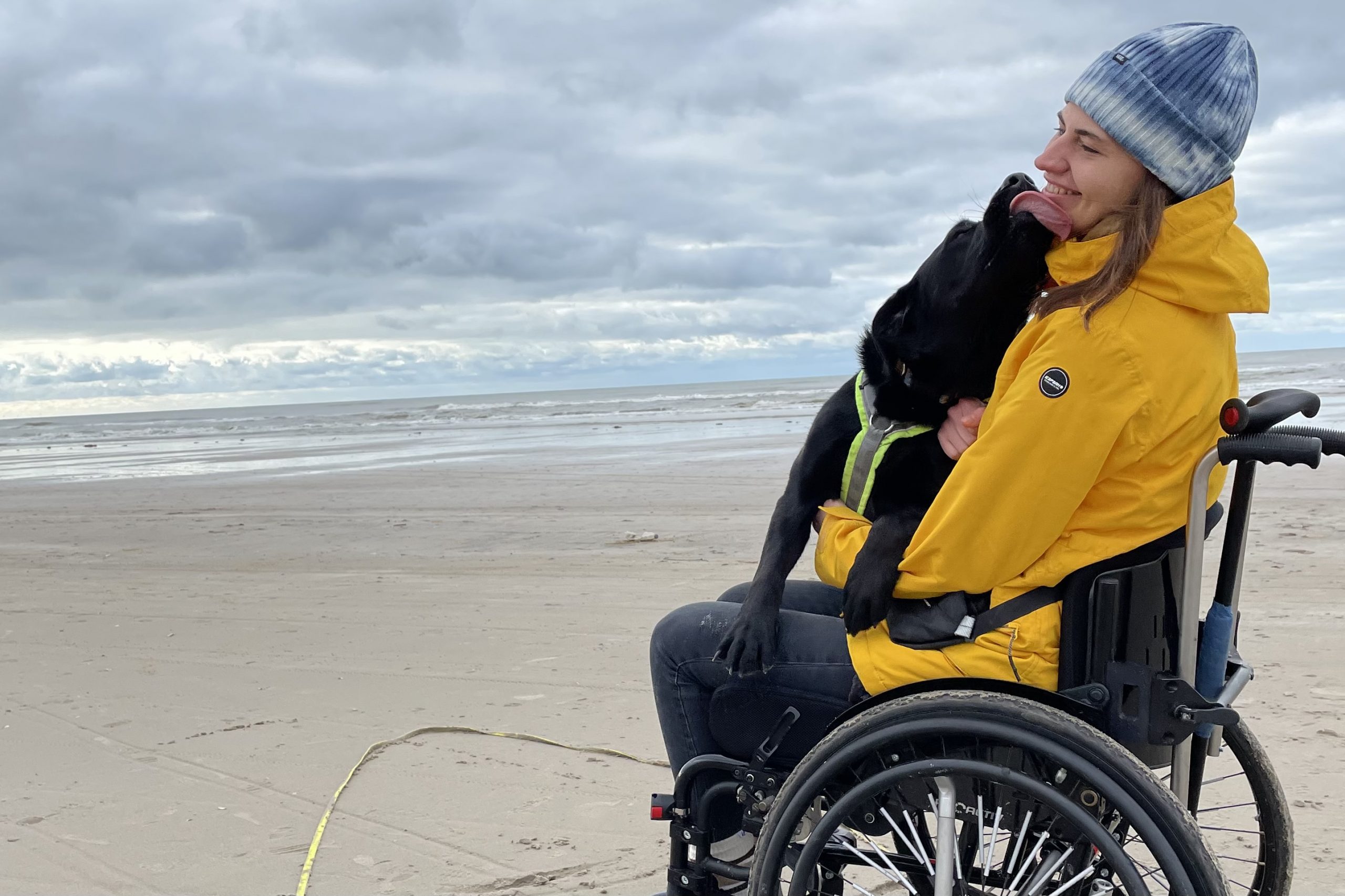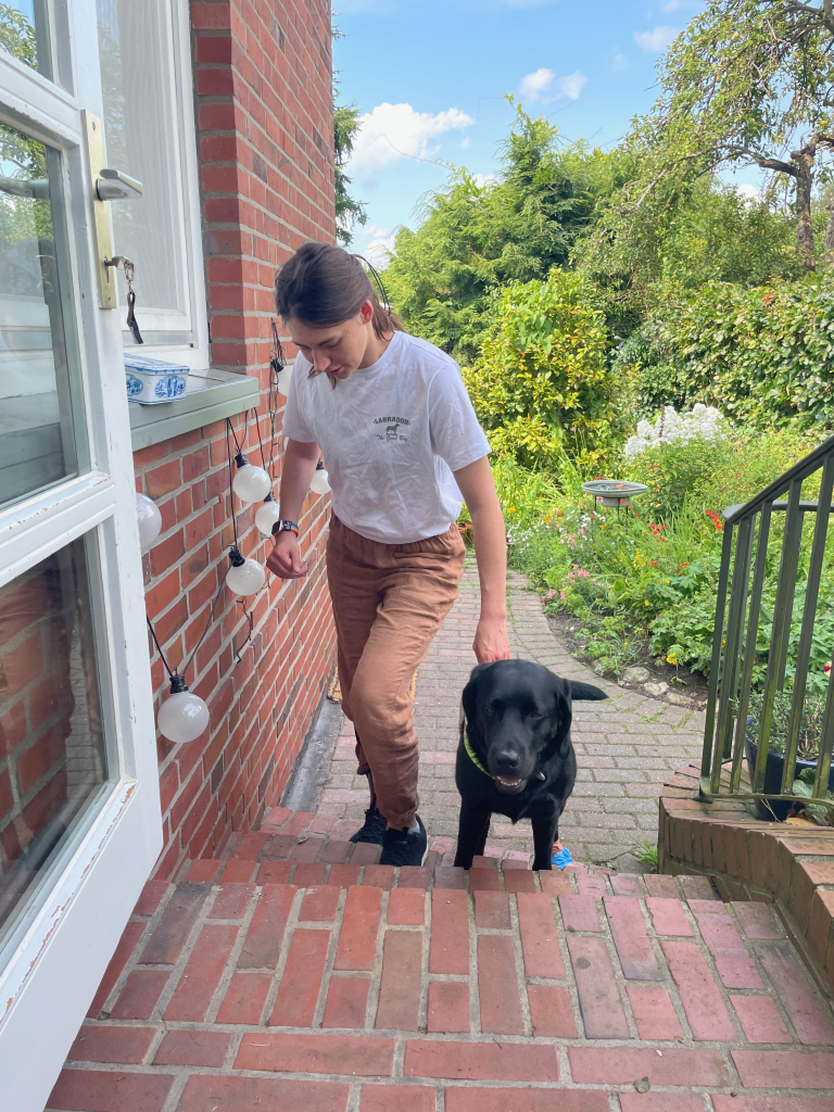 Wenn Sinje ihren Gehstock liegen lässt oder er umfällt, hebt Bruno ihn auf und bringt ihn ihr.